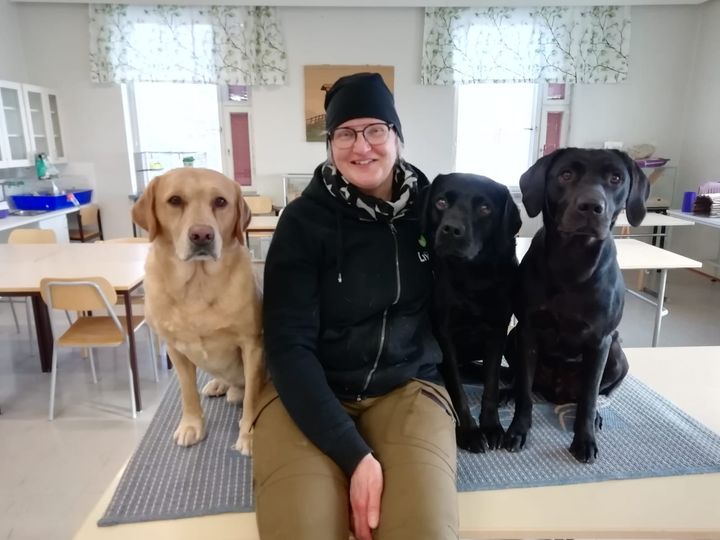 Kirsillä on kaksi virallista kasvatus-ja kuntoutuskoiraa, joita hän käyttää työssään ammatillisena erityisopettajana.