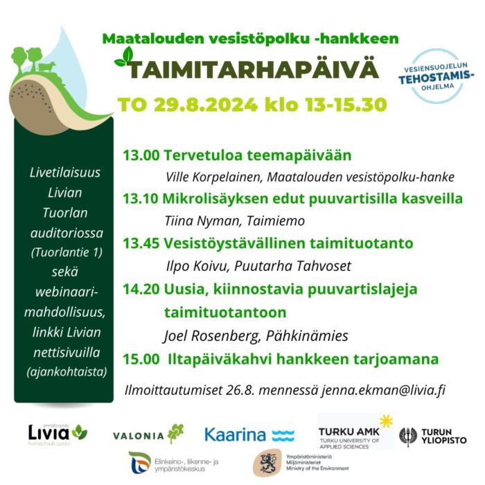 Livia tarjoaa ainutlaatuisen opiskeluympäristön luonnon keskellä. Toimipaikkamme sijaitsevat Kaarinan keskustassa, Tuorlassa ja Paimiossa. Lisäksi käytössämme on oppimisympäristö Paraisilla meren äärellä. Tarjoamme erilaisia koulutusvaihtoehtoja päiväopinnoista monimuotokoulutuksiin, oppisopimuskoulutuksesta osatutkintoihin, lyhytkursseja ja paljon muuta.