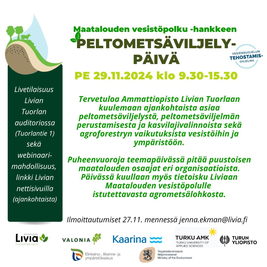 Tilaisuus on suunnattu maatalous-, ympäristö- ja vesistöalan ammattilaisille, opiskelijoille ja muille aiheesta kiinnostuneille.