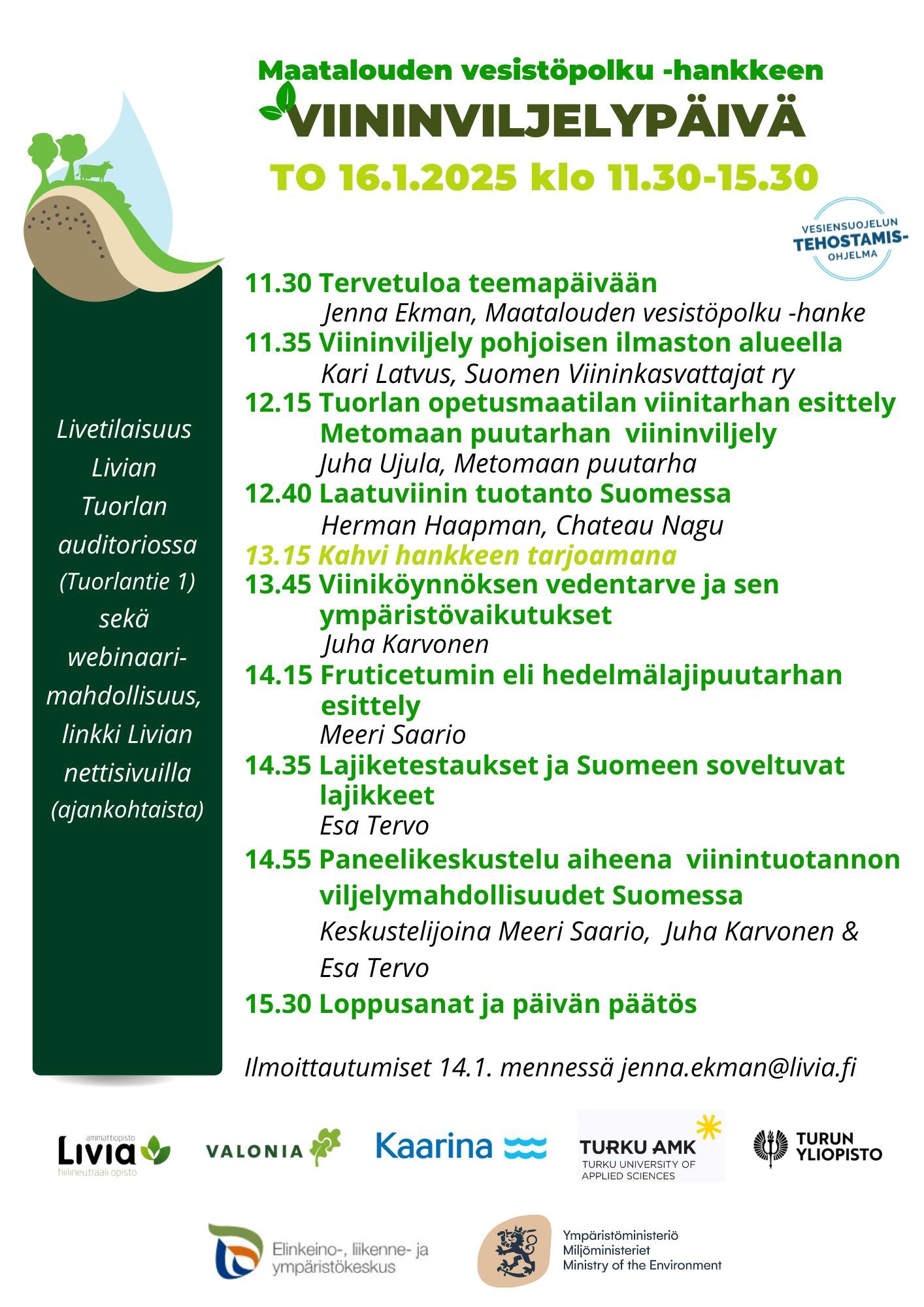 Maatalouden vesistöpolku -hankkeen viininviljelyaiheinen teemapäivä torstaina 16.1.2025 klo 11.30-15.30
